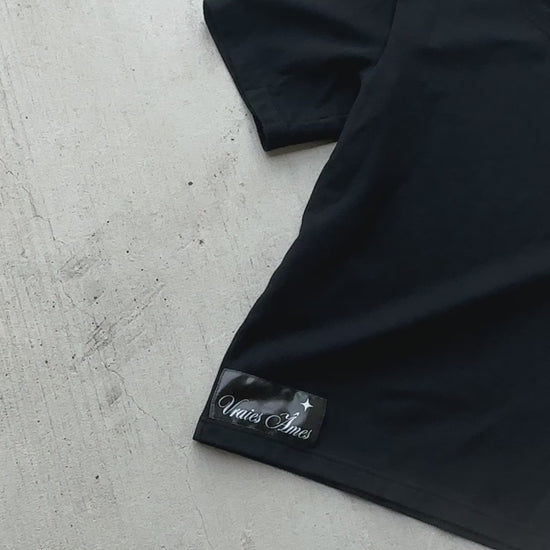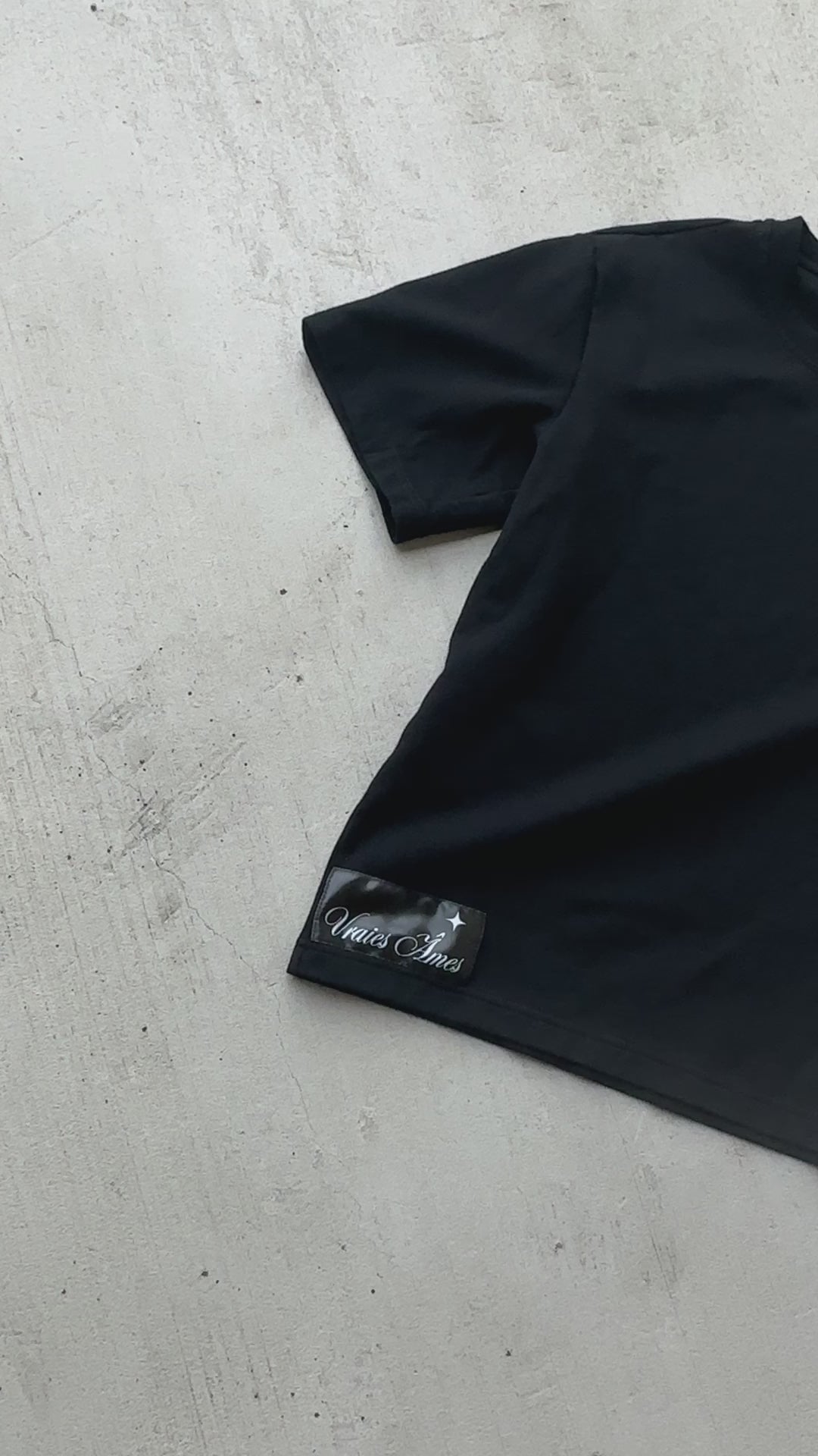 The bold, minimalist design features the iconic Vraies Âmes logo, representing authenticity and strength.